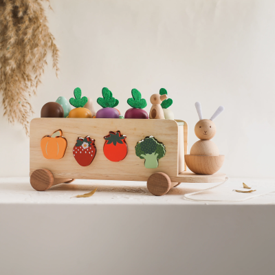 2024 New Arrival Carrot Harvest Game Wooden Shape Sorting Toy Car Kids Montessori Toys